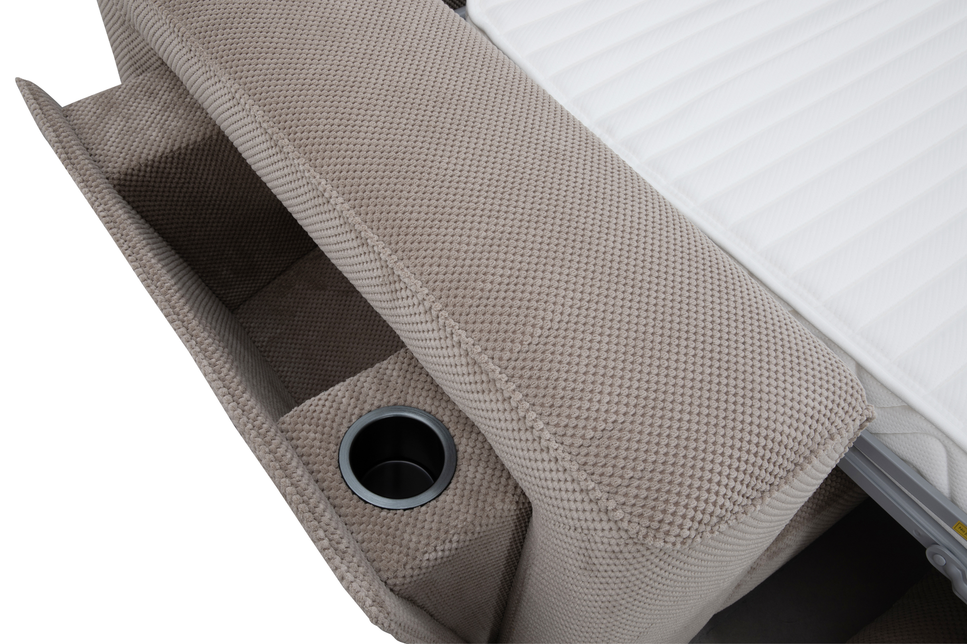 A built-in arm pocket with cupholder adds extra convenience for remotes, devices or drinks. With generous seating comfort during the day and a premium memory foam mattress at night, the COASTAL offers a smart, space-saving solution.